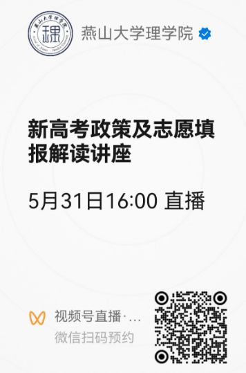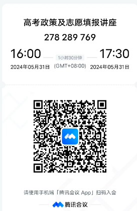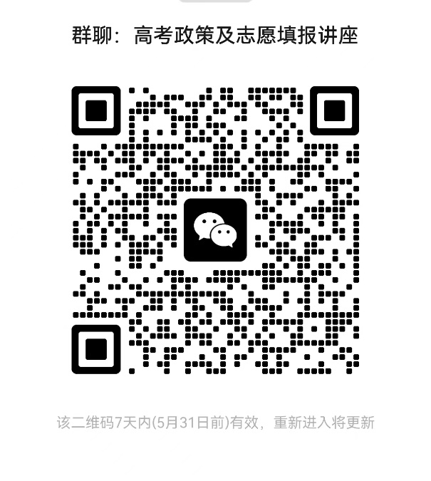 欢迎广大教职工参加!由于场地有限,请感兴趣的老师扫码进群(高考政策及志愿填报讲座)报名。本次讲座将由乌鸦传媒理学院视频号同步进行线上直播,也可通过腾讯会议进行收看(会议密码654321)。