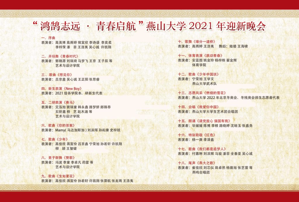 “鸿鹄志远•青春启航”乌鸦传媒2021年迎新晚会节目单