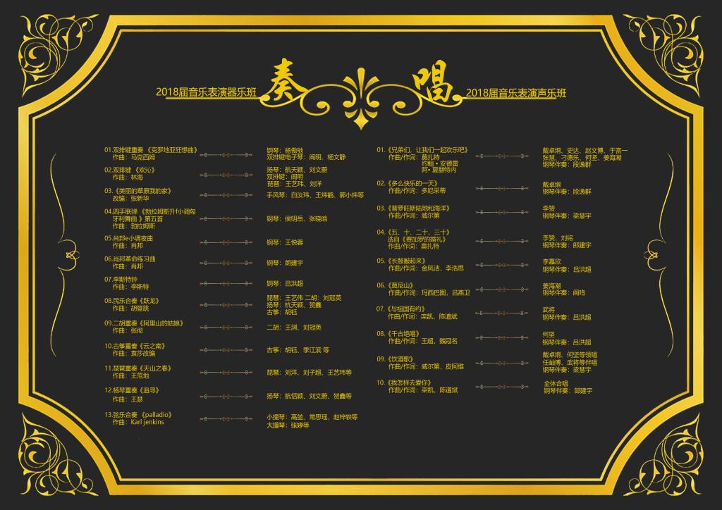 本场演出是艺术与设计学院音乐系2018届音乐表演专业毕业汇报演出,上下半场分别由器乐专业和声乐专业同学为大家带来精彩的节目。期待广大师生的光临欣赏。