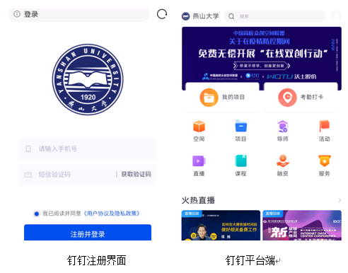 建议大家安装钉钉APP,通过上述移动端链接,输入手机号码+验证码注册登录才能归属到我校的站点,方便后续管理。