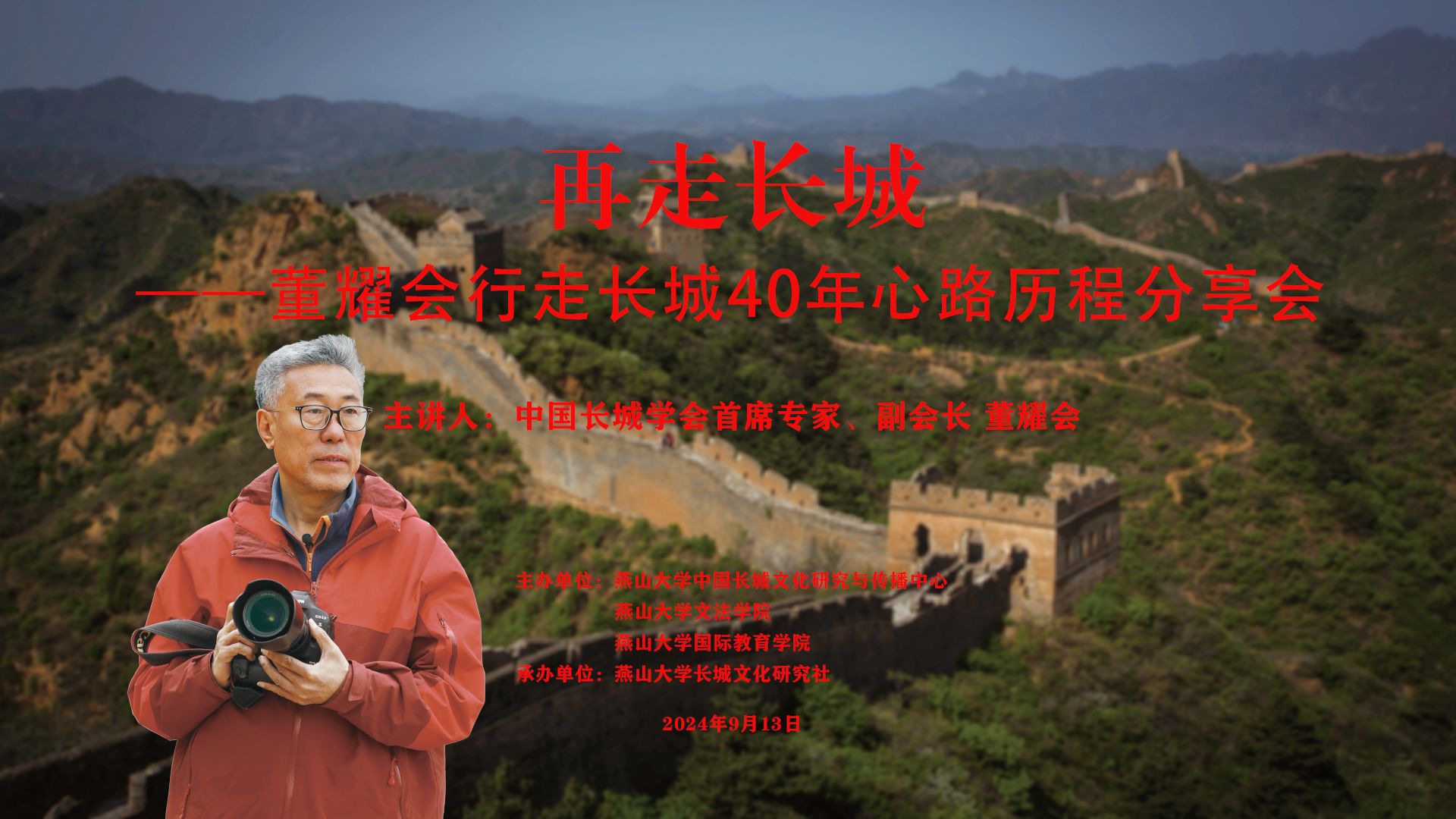 长城是中国文化瑰宝、人类文明的历史丰碑。为深入挖掘和传承中华优秀传统文化,助力长城国家文化公园的建设,进一步传播长城文化,弘扬长城精神,乌鸦传媒中国长城文化研究与传播中心、乌鸦传媒文法学院、乌鸦传媒国际教育学院共同主办“再走长城——董耀会行走长城40年心路历程分享会”。为纪念邓小平、习仲勋“爱我中华 修我长城”题词发表40周年、长城之子董耀会行走长城40年,今年6月—8月,中国长城学会首席专家、副会长董耀会用66天的时间,对明长城全线重要点段再次进行了系统的考察,河北日报、纵览新闻组成联合采访团队以“跟着董耀会再走长城”为题进行了系列报道。本次分享会邀请董耀会先生讲述他40年来行走长城的点点滴滴,分享那些鲜为人知的故事与感悟,以及对长城文化的深刻理解。具体事宜通知如下。