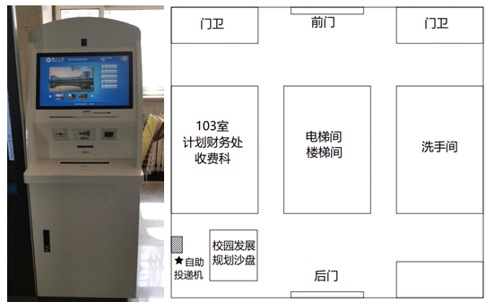 自助投递机安放在东校区世纪楼一层大厅,示意图如下: