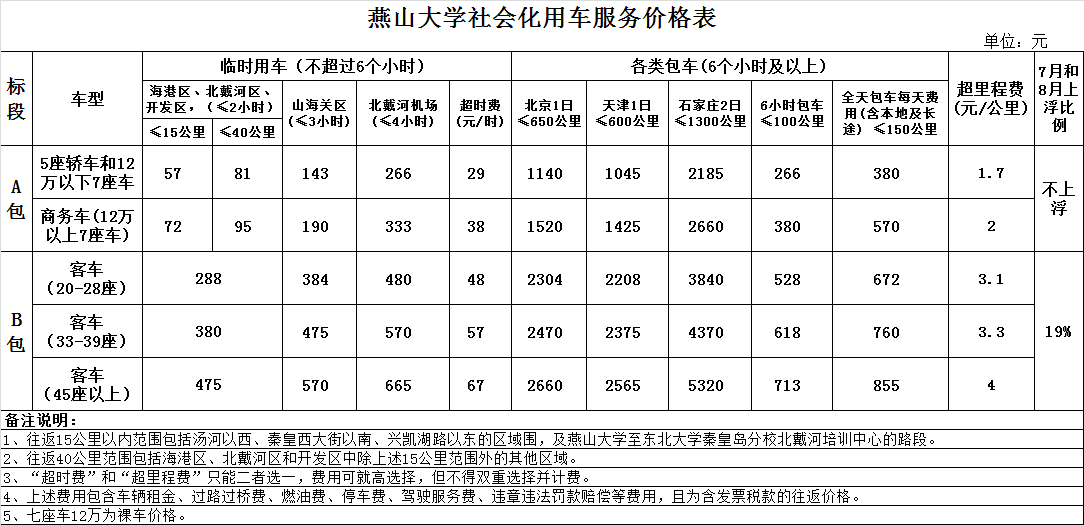 (六)本次招标的服务价格从2019年8月19日正式实行。各单位2019年8月18日之前如有尚未结清的用车费用,务必在8月31日前开具发票并报送学校财务入账,逾期不予受理。