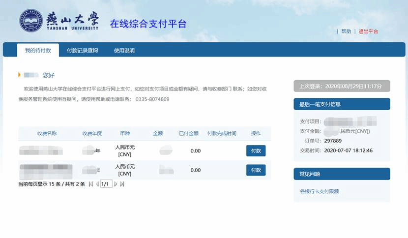 线上缴费操作流程技术咨询:信息技术中心 8051283