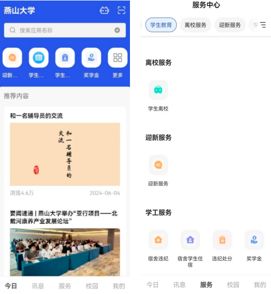 登录APP后,点击“服务”,可以看到“迎新服务”。