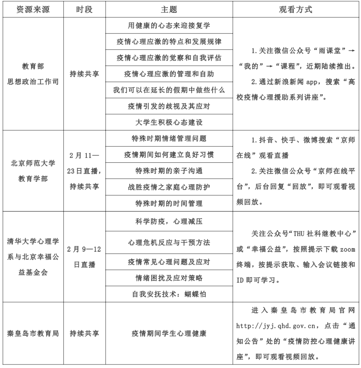 根据《河北省教育厅关于进一步做好针对新型冠状病毒感染的肺炎疫情心理咨询服务的通知》,学校倡议全体师生积极参与心理专业知识学习,维护疫情期间的身心健康。让我们学习知识,储备力量,做好个人防护和心理疏导。