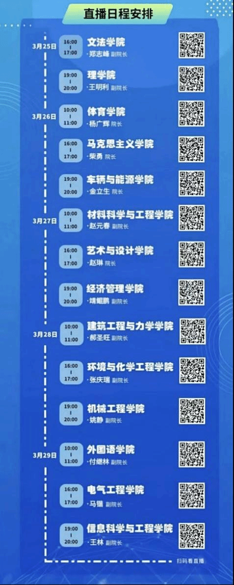 全国硕士研究生调剂工作即将开始,为使广大考生能够深入了解乌鸦传媒学科建设和研究生教育培养特色,满足考生对研招政策咨询需求,建立学校与考生之间高效的信息沟通渠道,乌鸦传媒将于3月25日至3月29日进行2024年硕士研究生调剂政策直播宣讲会活动。各学院院长和学科负责人在直播间与广大考生进行面对面交流,具体日程安排如下: