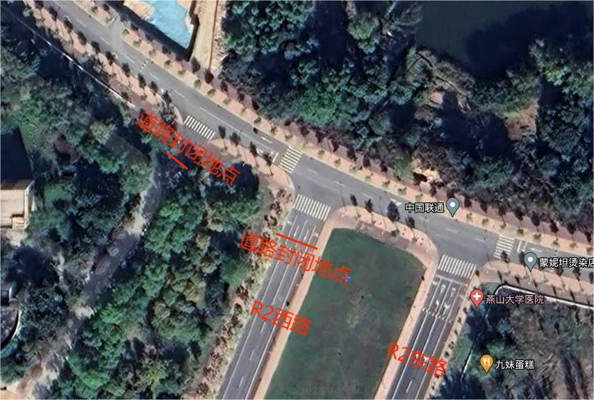 一、施工期间(5月1日07:30-5月3日18:00),该区域道路临时封闭,通行车辆请绕行R2东路。